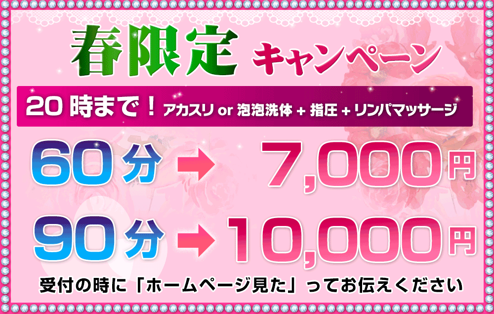 疲れた体にちょっとごほうび…貴方の癒しの時間は当店と共に… 日々都会の幻想と毎日の仕事に追われ疲れを溜めたりしていませんか? そんな時は粋な音楽を聞き素敵なセラピストにマッサージされ、 まったりと大人のムードに浸る癒しの時間なんていかがでしょうか? 本日も皆様のお越しを従業員一同心よりお待ち致しております♪